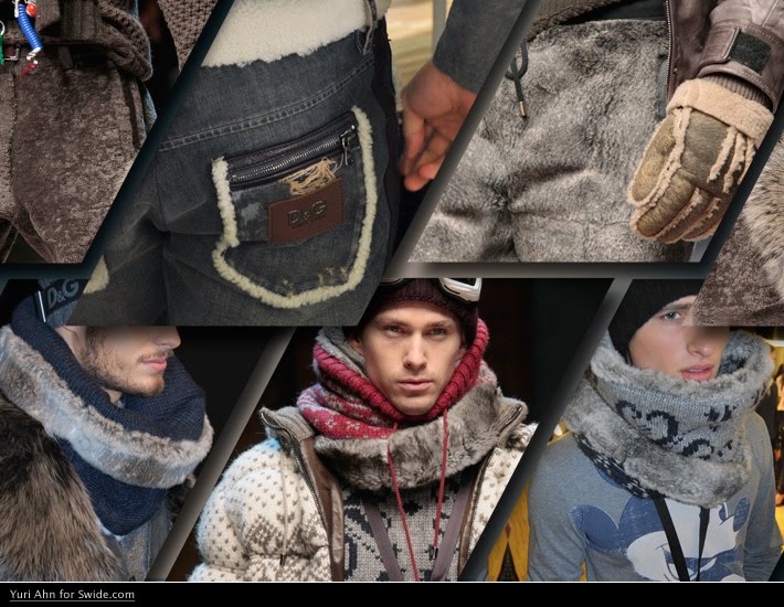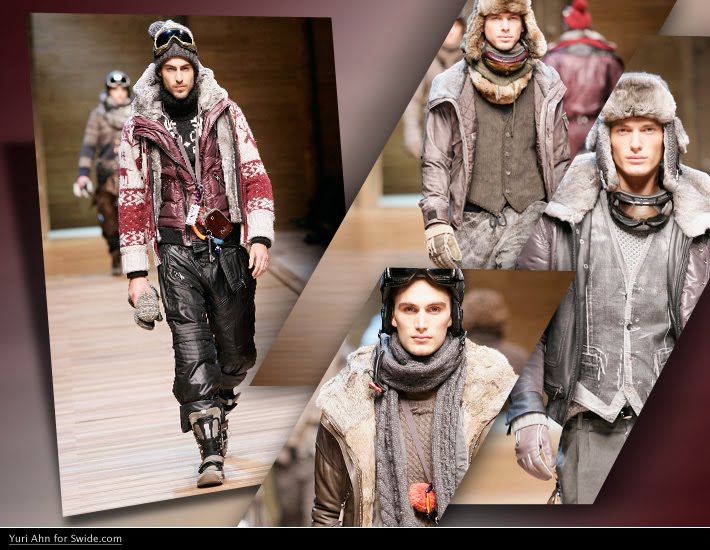 Come al solito, non c'è niente di standard a D and G. Il denims lavato, maglieria stile Nordico e bomberini in pelle o giacche di shearling stile aviatore. Le tendenze della moda montagna sono venuta per la città, una collezione veramente divertente.